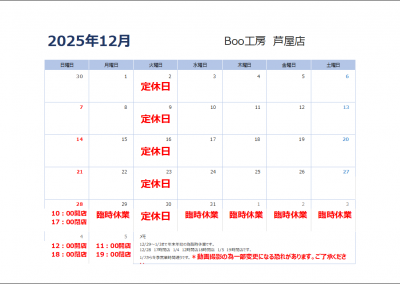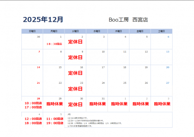 12月営業時間のお知らせ!
